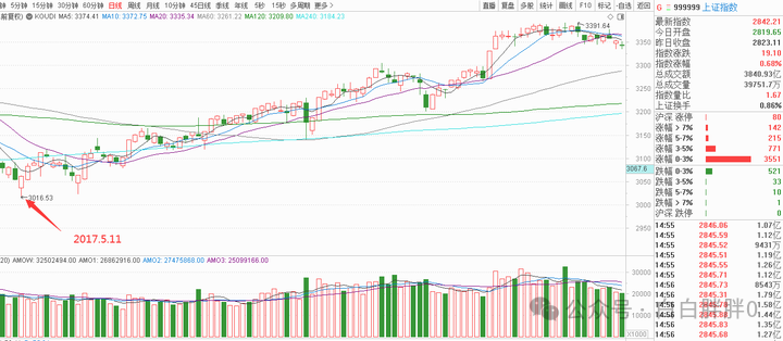 复盘当日是2017年5月11日,跌破3044来到3016点