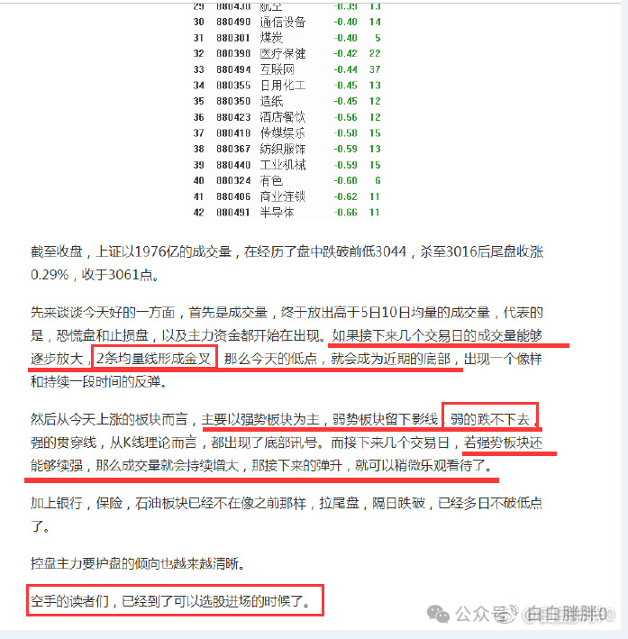 结构上已经是领涨的主要以强势品种为主(大盘破底,但强于大盘没破底的品种(比如现在的半导体等科技板块))弱势品种已经开始有止跌信号