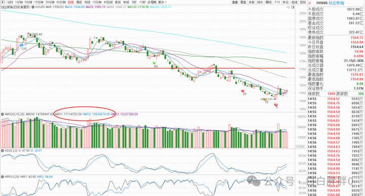 成交金额方面,两个指数都较昨日缩量,低于上涨趋势基准量