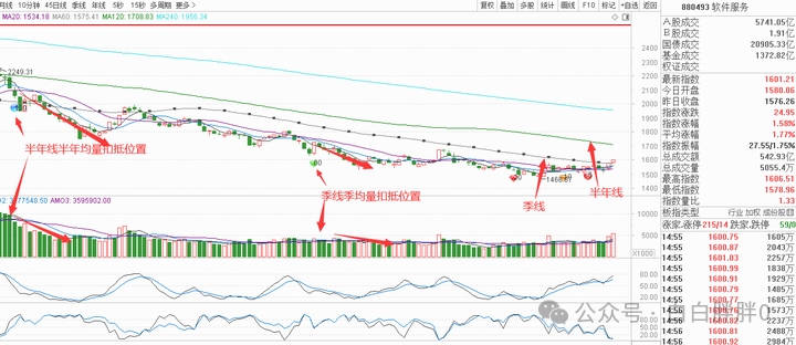 因为季线接下来扣抵位置会逐渐下来,所以走平的均线不具备支撑压力以及拖拽影响 如果明天就开始量缩,大概率就会在季线处盘整一段时间 因为比大盘先落底,之后持续增量大于上涨趋势基准量,就能向上挑战半年线