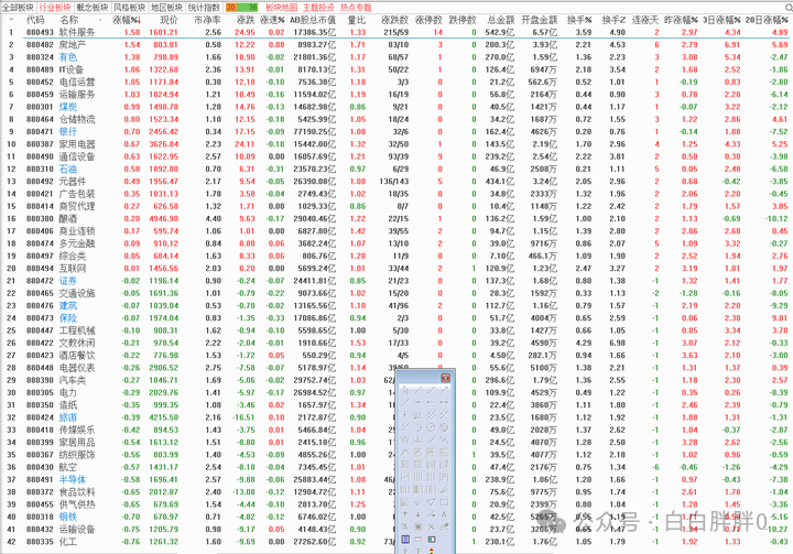 结构上,今天上涨第一的软件服务,有朋友在问,里头有不少股票提前大盘落底起涨,会不会是下波主流?