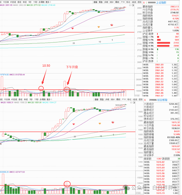 上证在早上10点50就有,从这一点而言,今天的行情是创业板这边跟随上证