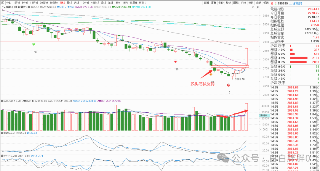 K线角度,今天上证的K线情况比较乐观,多头岛状反转