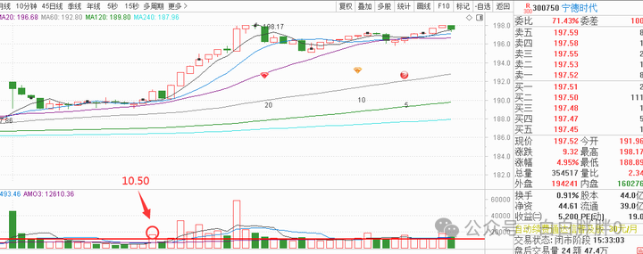 创业板这边机构重仓的第一股宁德时代同样10点50盘中出量和主板这边“同步”