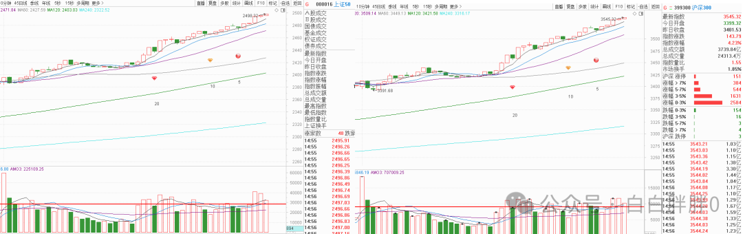 价格方面,除了昨天的破平台返平台外,今天两个指数都重新增量站回之前上涨波段比例的50%