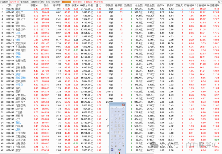 依然看不出主流是什么(但是酿酒,建筑,保险,证劵,家电之类的权重持续增量带动指数上涨,这增量的钱,不是假的,二级市场每笔买入的“大资金”都必定是为了赚钱,而他们这些标的的主力类型构成都是国家队外资法人机构,所以这里之后对他们可能成为主流,只要在指数的缩量整理期观察到他们整理的姿态够强势,就可以确认)