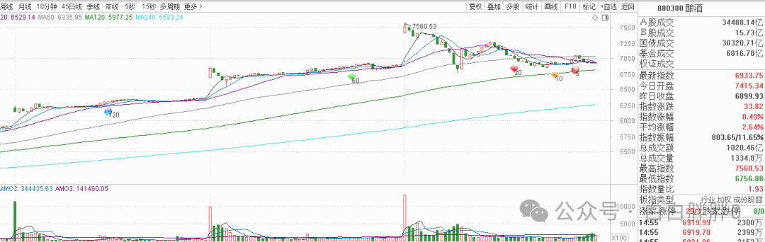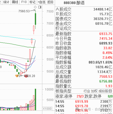 所以酿酒今天7560.53的高点大概率不是这轮上涨的最高点