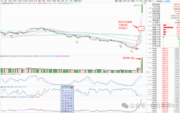 对于接下来,今天两个指数波段最大量,上证的3674.4,创业板的2576.22都大概率不是这轮上涨的最高点