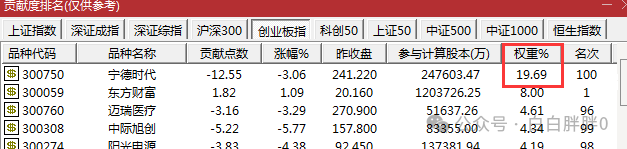 宁德时代是创业板的第一大权重股,一只股票就占了创业板接近20%的权重