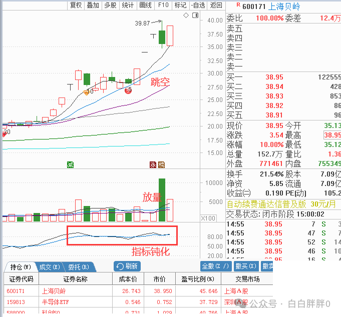 所以这里仅仅是做分仓止盈的一次主动止盈,剩下的不碰触你的止盈点条件就可以一直拿下去,这样就可以避免出现了这样的技术面信息以后你卖出,却突然增量大涨(虽然概率小)