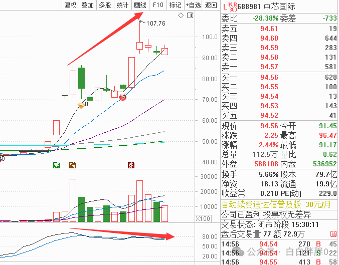 所以类似中芯国际这样的技术面的股票,第一个止盈点,都可以这么设计