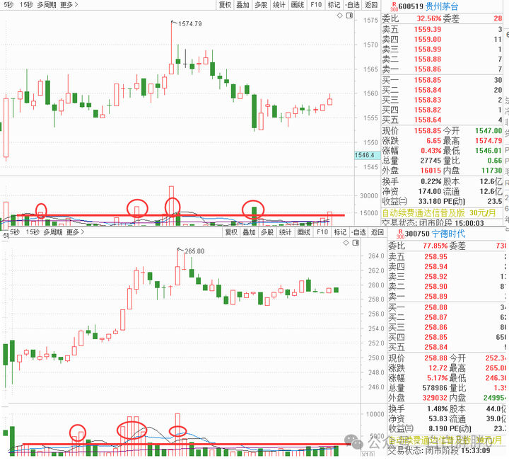 最后茅台和宁德都盘中出量(过前三盘高当时或者之后给出大于第三盘量)