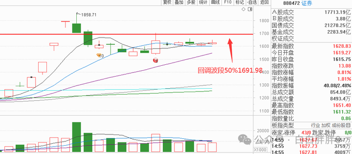 证券和宁德一样,都是跌破上涨波段50%再站回,现在距离回调波段50%距离很近