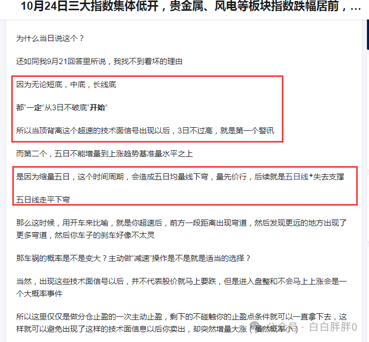 因为虽然你手里的标的出现这些技术面信息不代表这里马上要下跌,但是小波段主升的上涨惯性已经改变(三天不过高,参照昨日复盘说的9月23日上证3日不破底,五天不补量,主升段特色就是放量跳空指标钝化,没量,指标就是真背离,就不会变成钝化),右侧交易除了空间,“时间”也是重要成本,如果盘整一段时间,你的资金却全卡在里面,其实就是浪费了资金的使用效率,空一部分资金出来做别的,效率会更好
