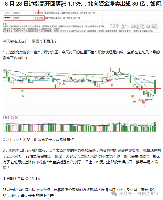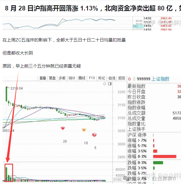 比如利多消息出来,隔日第一个五分钟的K线技术面信息,量大,收阴,比如去年8月28日