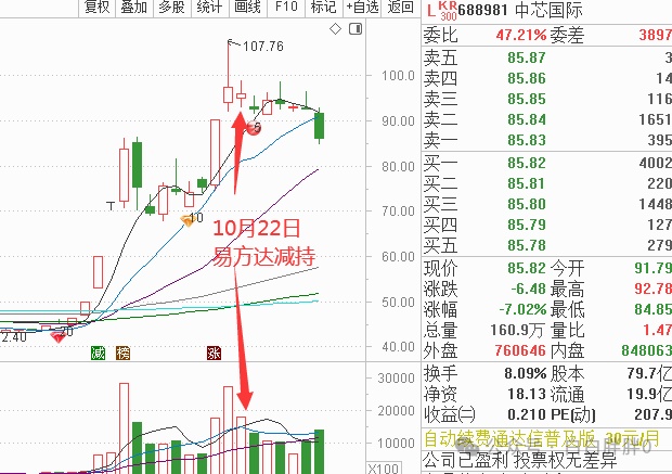中芯国际现在年以内6条均线多头排列,标准的上涨趋势,背离过高,叠加出现各种复盘中说的技术面瑕疵,该减仓减仓,触发分仓止盈该动作的就动作