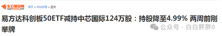 易方达的减持并不是不看好中芯,而是监管规定导致的操作