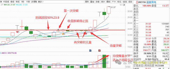 有朋友问,如果当天没有注意到通富这个突破回调波段50%的买点,之后应该怎么上车呢?
