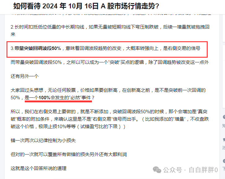 2024.10.16A股分析(买回调波段50%带量“突破”的逻辑)