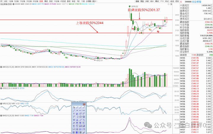 创业板上涨带量突破回调波段一半2301.37
