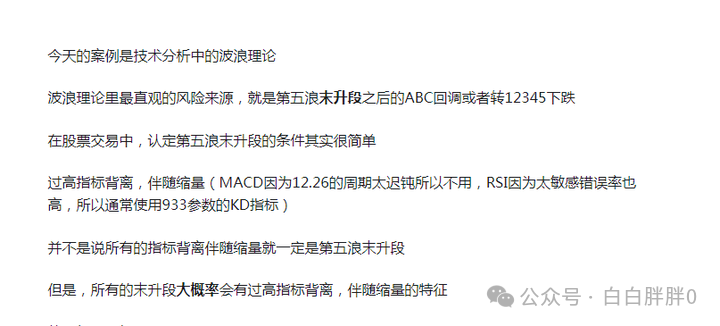 白白胖胖0:技术面瑕疵不宜追买的案例(一,波浪理论:第五浪末升段)