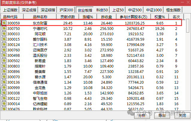 今天创业板贡献点数最多的个股