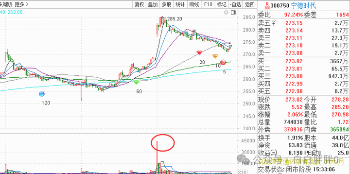 因为早上宁德开盘的量足够(爆几倍量),所以当时对创业板指数的日内看法偏乐观