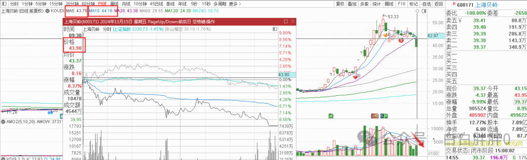 茅台9.50超前三盘量的低点后一个五分钟跌破