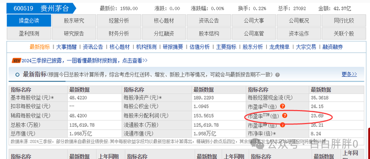 第一大权重茅台在低估值标准附近