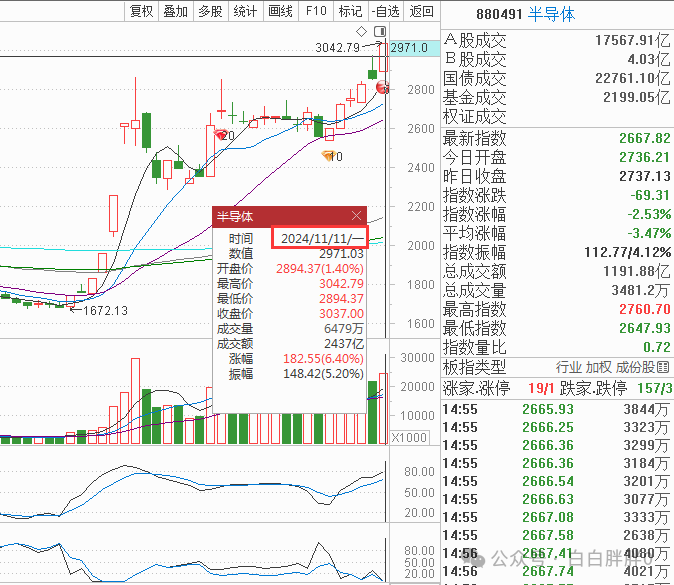 双十一,半导体大涨6.4%,当天没有持有相关科技品种的投资者,大多都是在懊悔,为什么自己不在车上,隔日一定要进去开仓