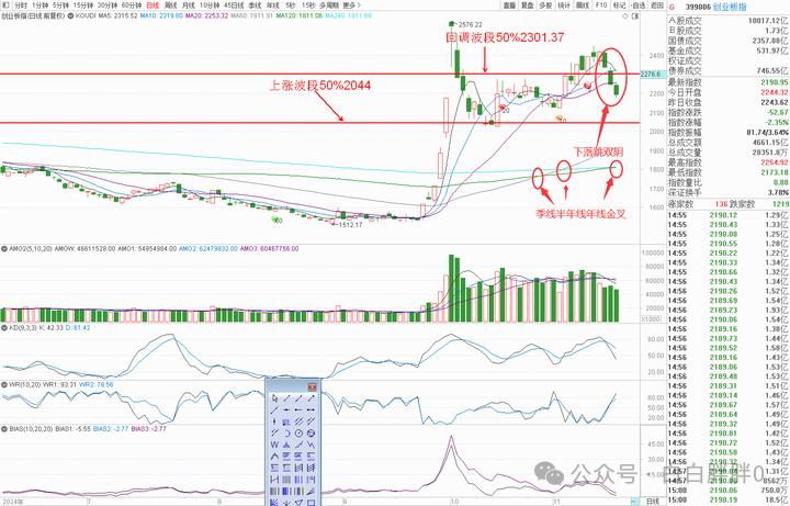 创业板这边,指数跌破月线,价格在双十一K线下方