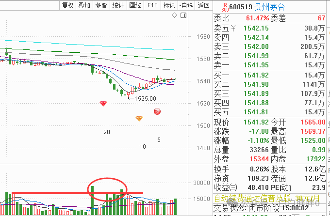 也就是说,今天的茅台是被行情拖着上来的
