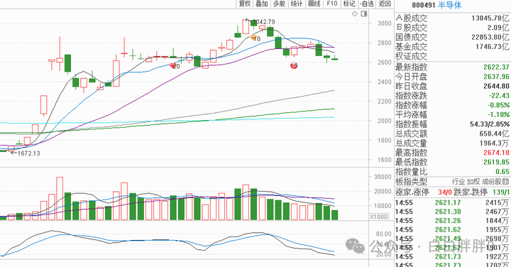 然后半导体,没量,回调以来的波段最低量,所以昨天的低点2590.41还会跌破