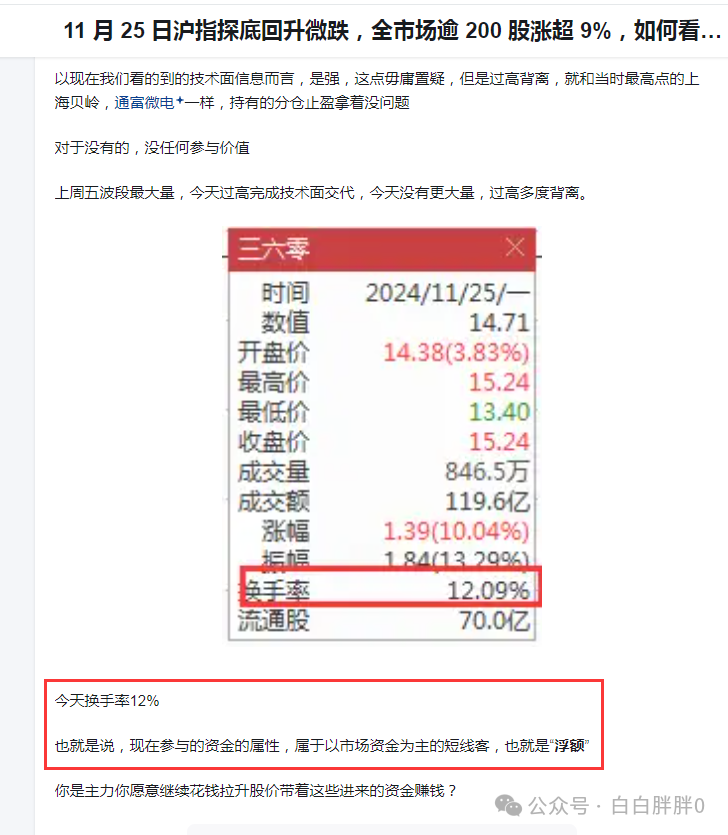 然后昨天一天12%换手率,就代表有“三分之一”的数量在一天内换了持有者