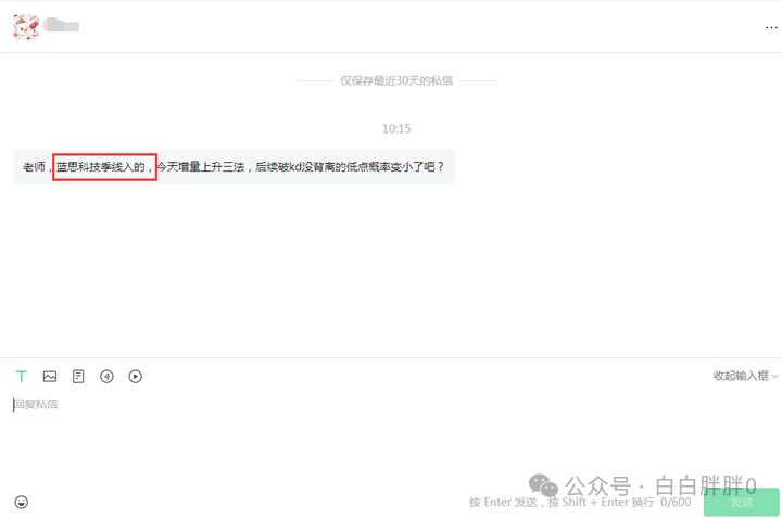 正好这段私信记录中提到的背离过高后,开始修正浪的整理,便不适合使用量价节点作为技术面支撑