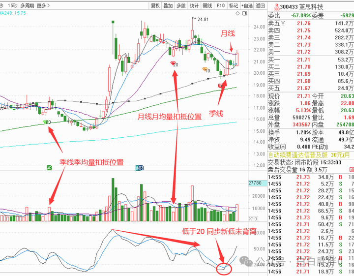 短线上,还在B反弹的进行中,接下来几个交易日的量,如果跑赢月均量扣抵量,那么B反弹可以继续向上,如果没跑赢,只是相当,在月线附近盘整(月线扣抵位置高于现价)如果又开始缩量(持续低于上涨趋势基准量)B反弹就可能提前结束(C下来的时间若是还在季线扣抵低位低量的时候,依然是合理试错点,而会不会跌破前面KD同步未背离的低点取决于当时的量)