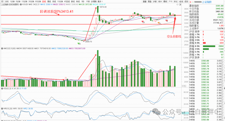 日线收中长阴,吞没昨日下影线,为空头吞影线,“短线”偏空解读