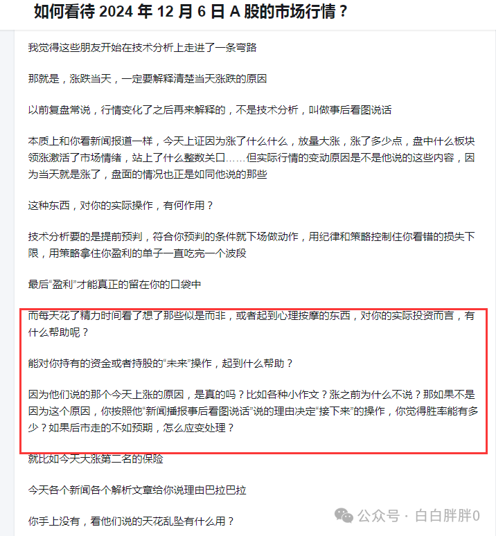 12月6日那些看涨说涨,和今天看跌说跌的言论一样,对实际操作,没有任何价值