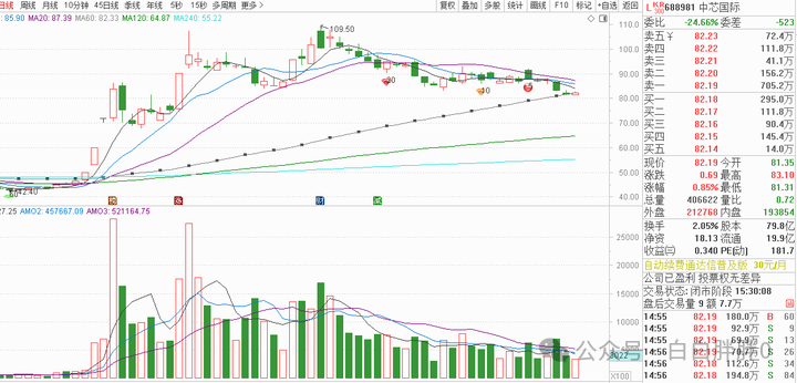 比如中芯是到季线了,季线扣低位低量没错,但是现在有量吗?说明它在现在阶段依然只是市场资金博弈的中段整理中的正常波动而已