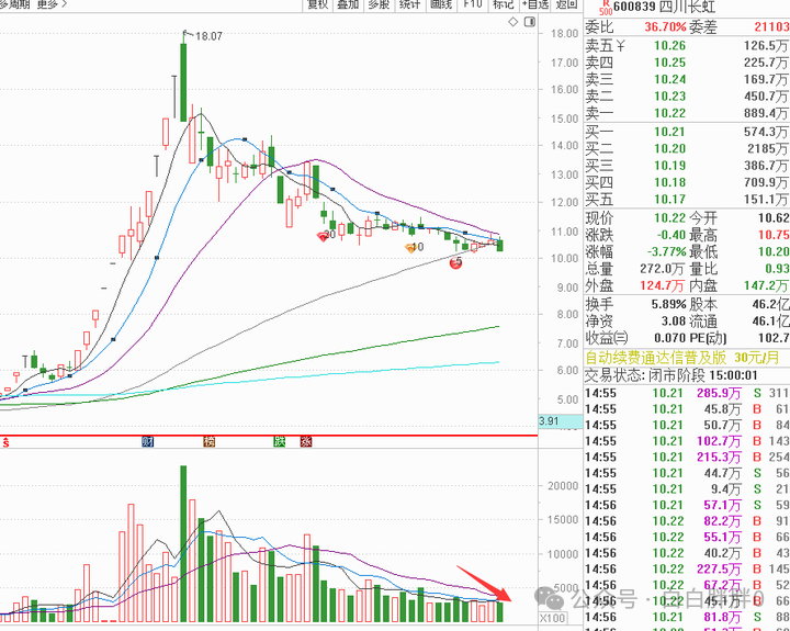上周四川长虹还稳稳的撑在上扬的季线
