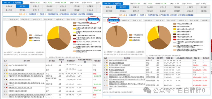 这是工商银行2014年的十大流通股东名单和现在的十大流通股东名单的对比