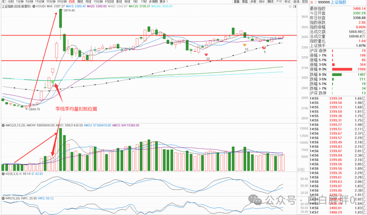 下周要涨就必须主动出量,所幸短期均线均量下周都开始变小,季线的下弯拖拽也只维持周一周二两天