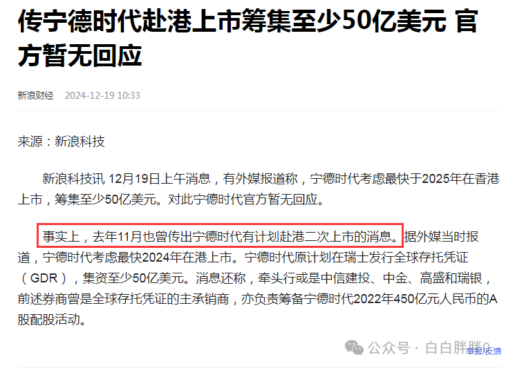 所以去年11月的下跌和宁德去港股上市有关联么?