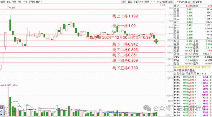 (最近有不少朋友表示之前直接重仓下场创50,保险和基建的ETF,所以这里说一下,你们的下场策略是右侧交易,那么破止损,该止损止损,止损了以后,要用网格交易布局就再布局,网格交易总资金不可超过总仓位三成,也就是说你在网格中线下的单子最多1.5成,这个交易和你之前的右侧下单分开,不要混淆,如果不愿意采用这种温吞的交易模式,就耐心等盘势出右侧信号再说,别频繁交易)