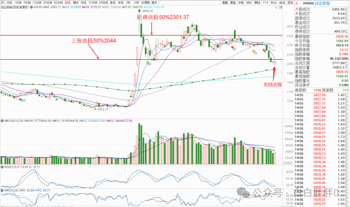 创业板是昨日创回调新低后今天开低收高,为阳线吞噬,偏多解读
