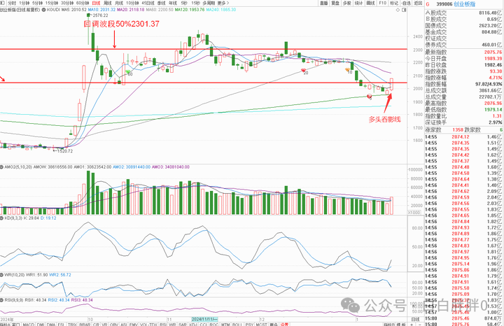 创业板收多头吞影线,也可以看做小周期的长阳破盘局,偏多解读