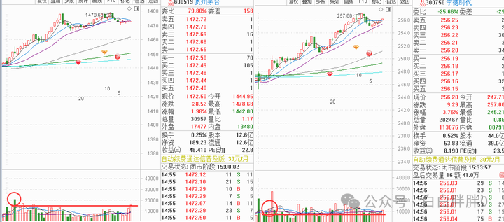 然后两只股票,在我写开盘八法讲解的第四盘,就盘中出量大于第三盘量,并且之后盘中不断出现这种量