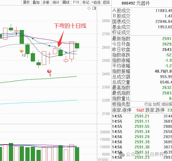 那么这里从技术分析的角度,右侧交易的话,就元器件板块而言,试错点是即将反转的十日线(量够,连阳一半2569.48就是)
