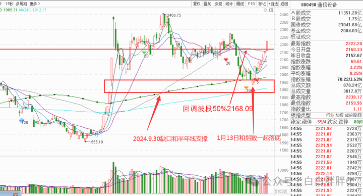今天的带量上涨,通信设备突破了回调波段50%2168.09(技术面转强信号)