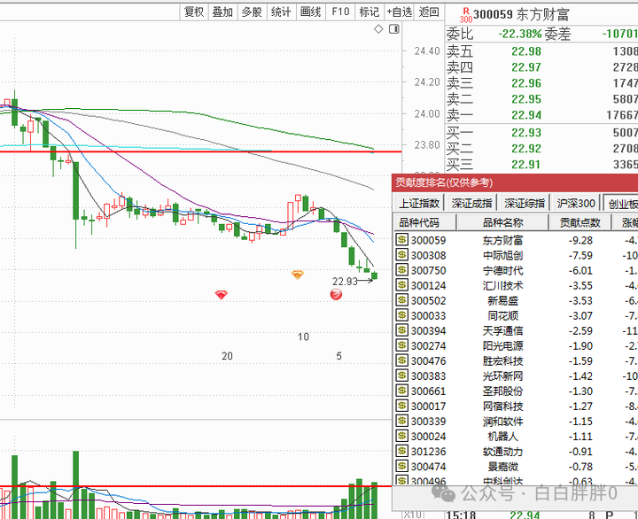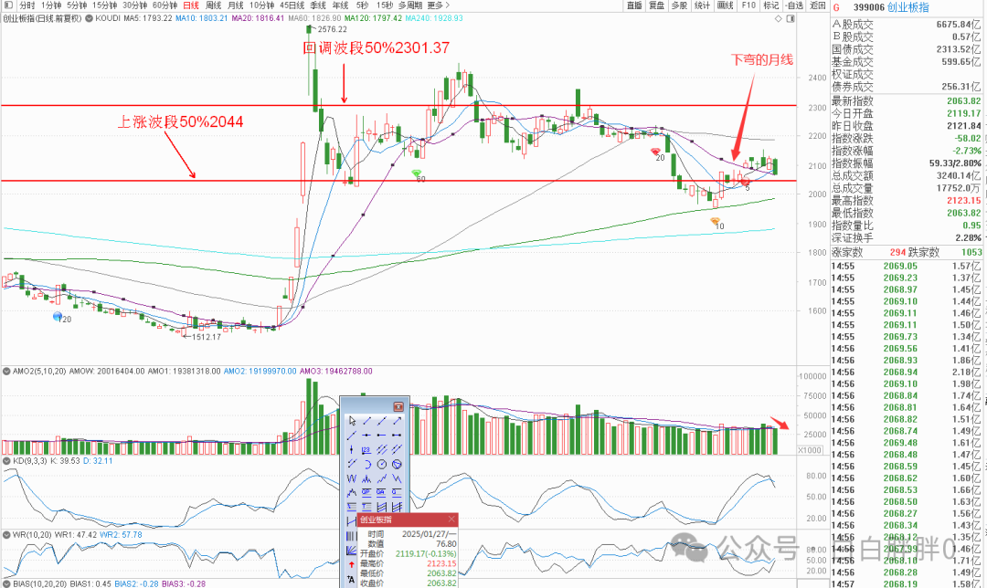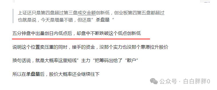 创业板跌破前三盘低后反弹站不稳前三盘低转弱叠加部分权重股杀盘量,收长阴
